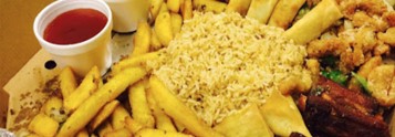 £6.00 - 1/2 Fried Rice + 1/2 Chips + Garlic & Chilli Sauce